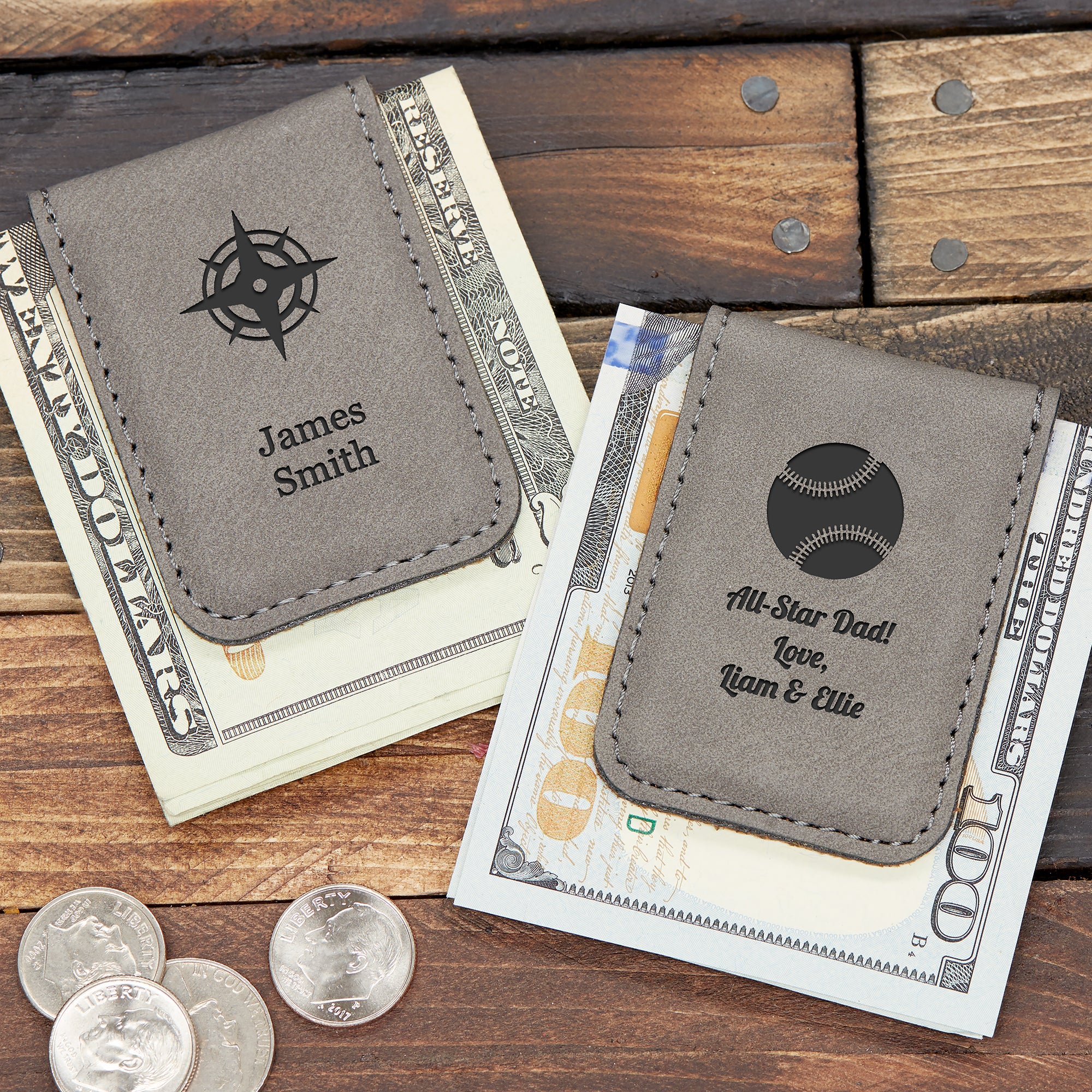 From the office to evening cocktails, eliminate the bulkiness of a wallet and step out in style with our Choose Your Icon Personalized Magnetic Money Clip. This money clip makes a unique and useful gift for Father's Day, birthdays, groomsmen, graduations and more!