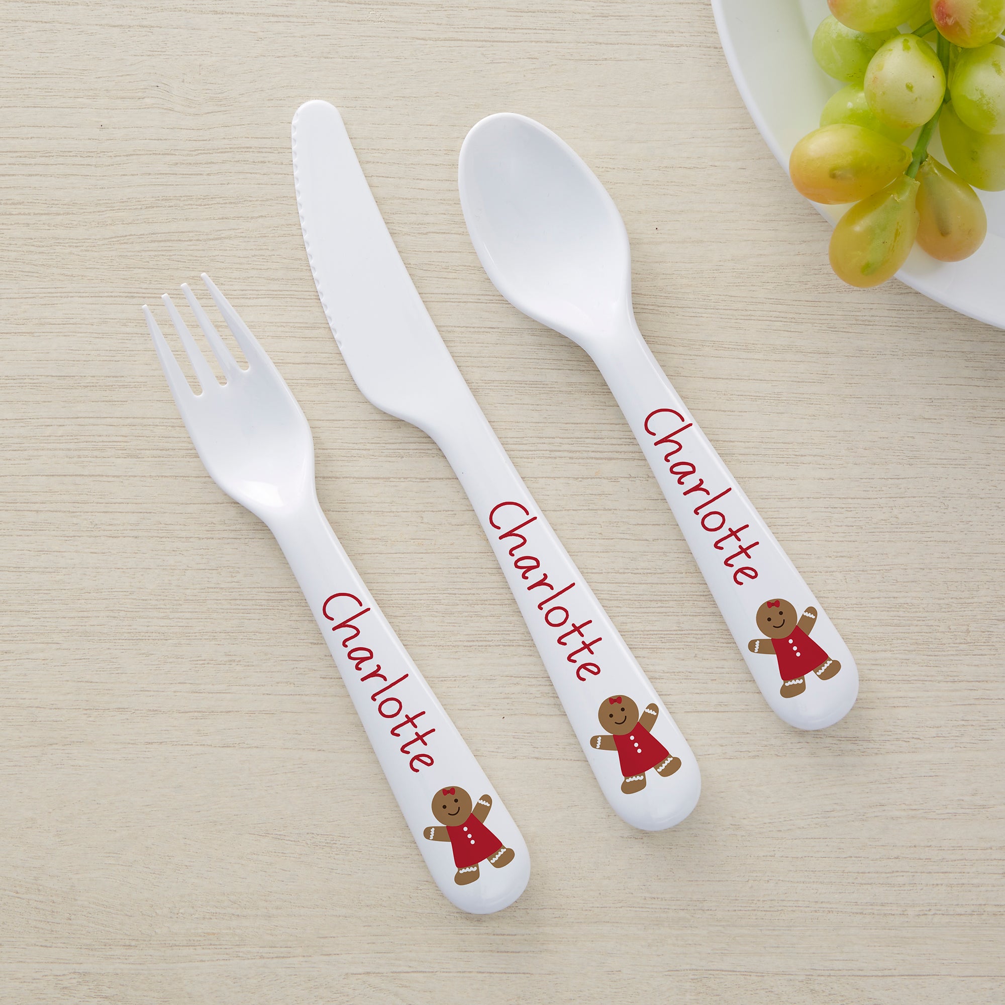 Product Information 48780-U - Christmas Characters Personalized Kids 3pc Utensil Set