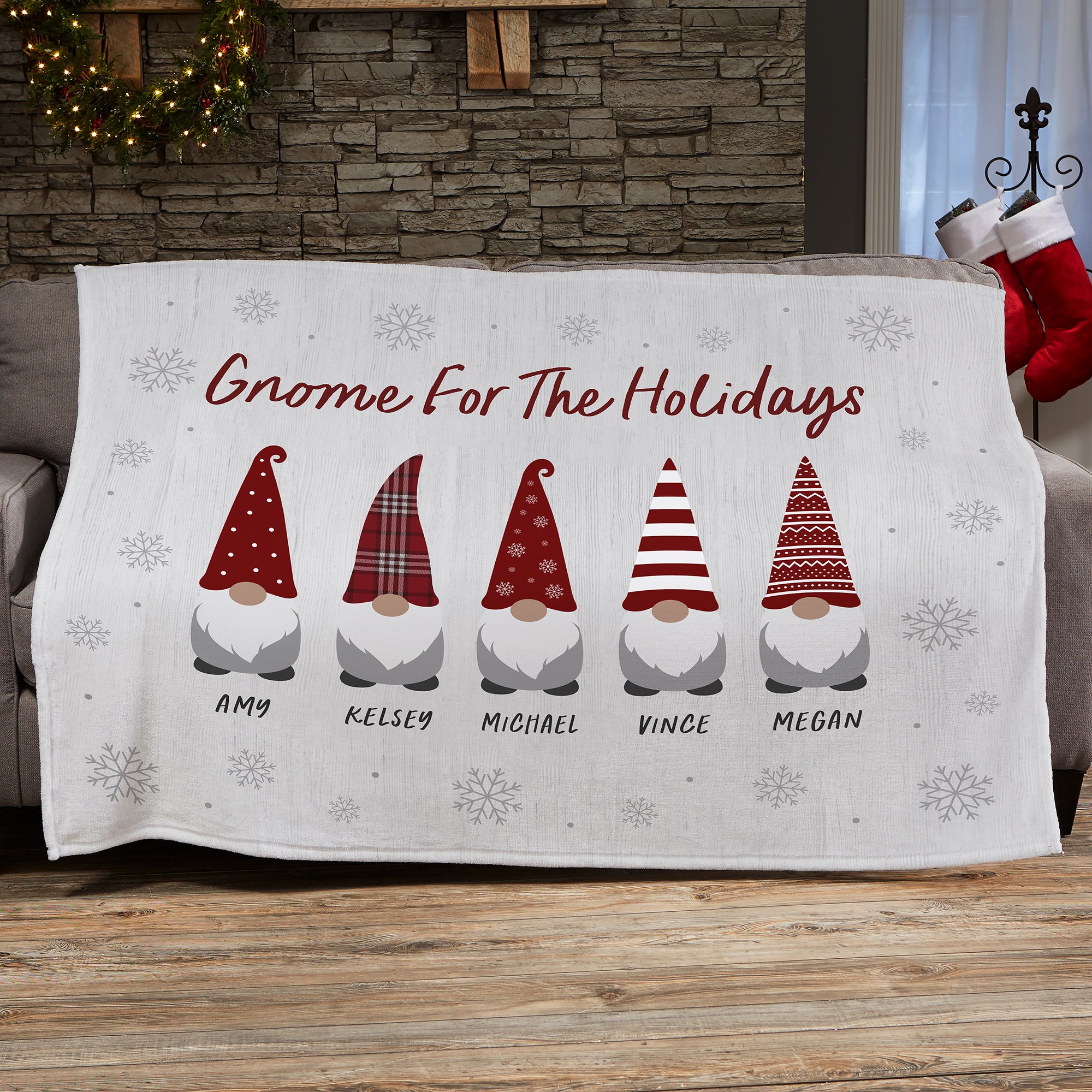 Add some holiday flair to your chair or sofa with our Christmas Gnome Personalized Blanket. The printed Gnome design is sure to add a festive winter cheer to any home decor.