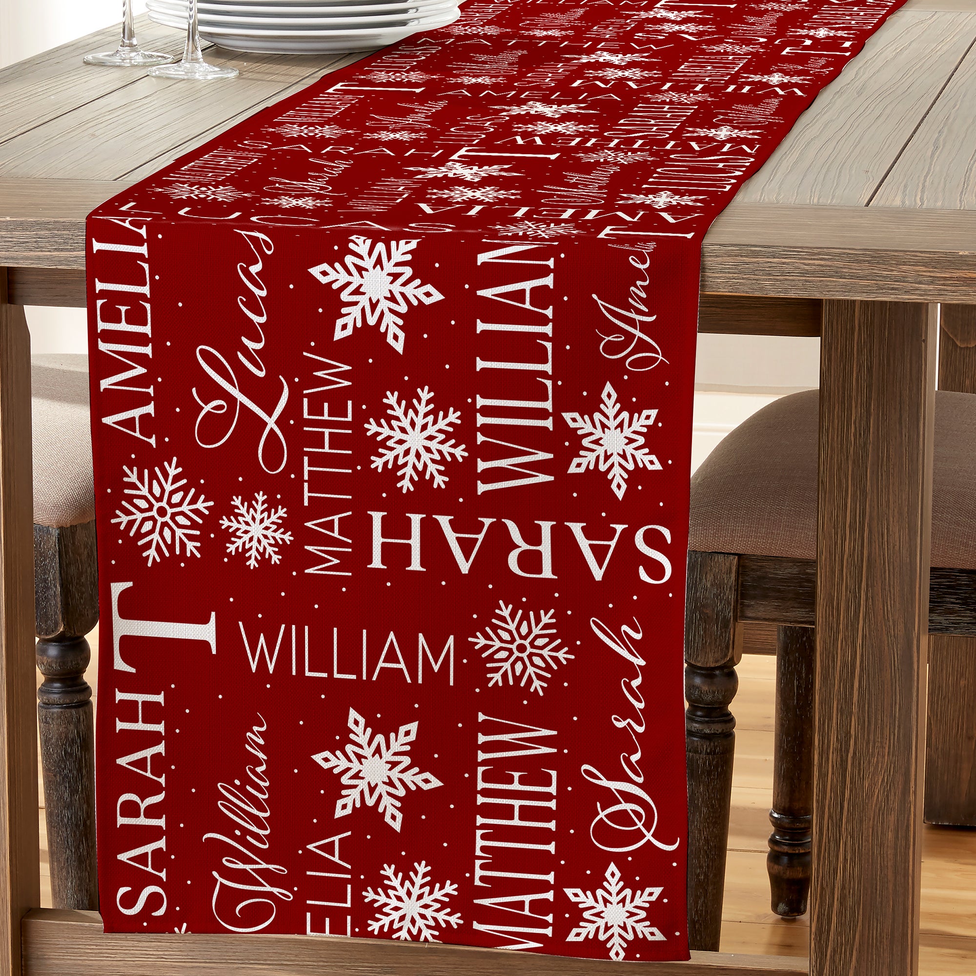 Christmas Snowflake Repeating Name Personalized Table Runner