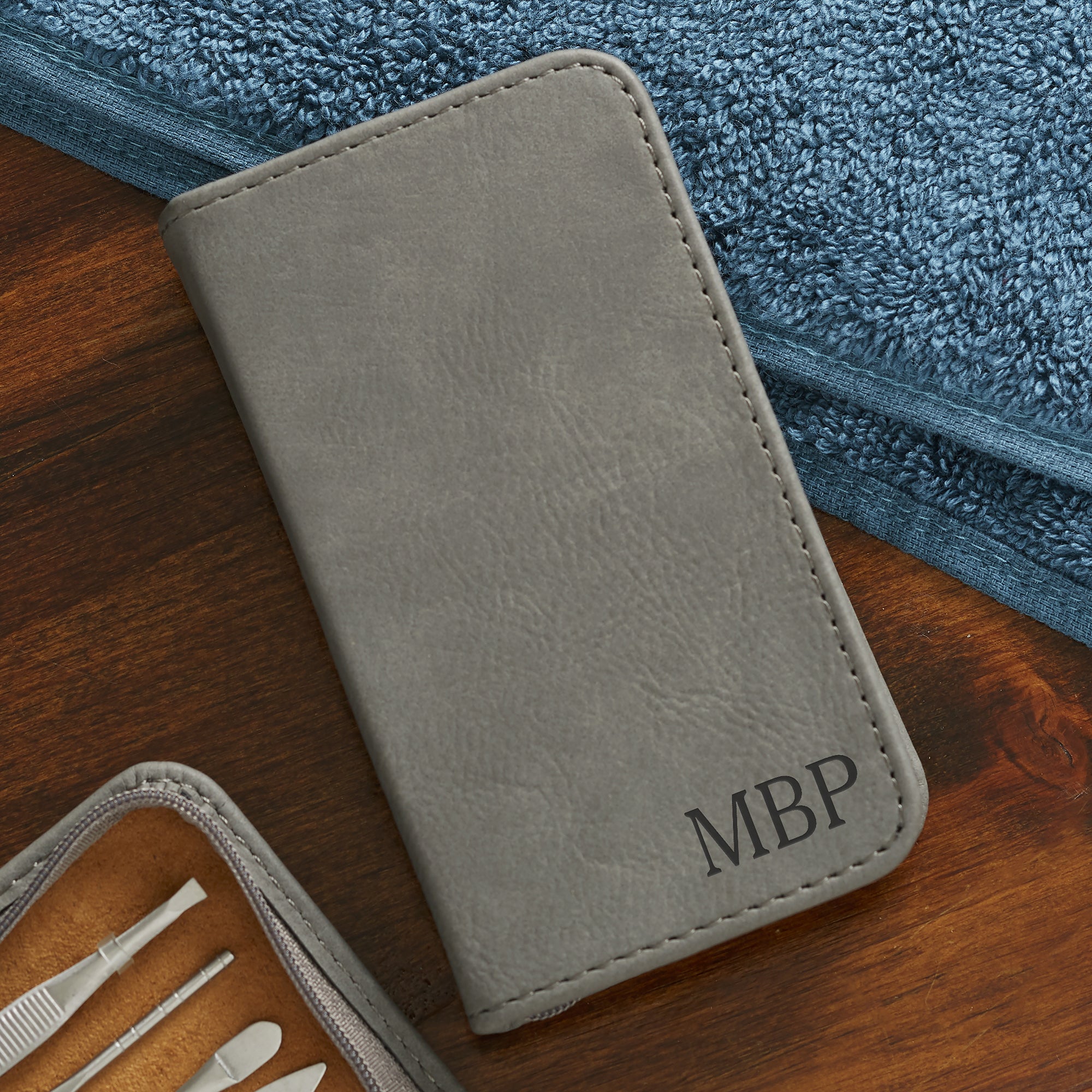 - Bi-cast split leather carrying case