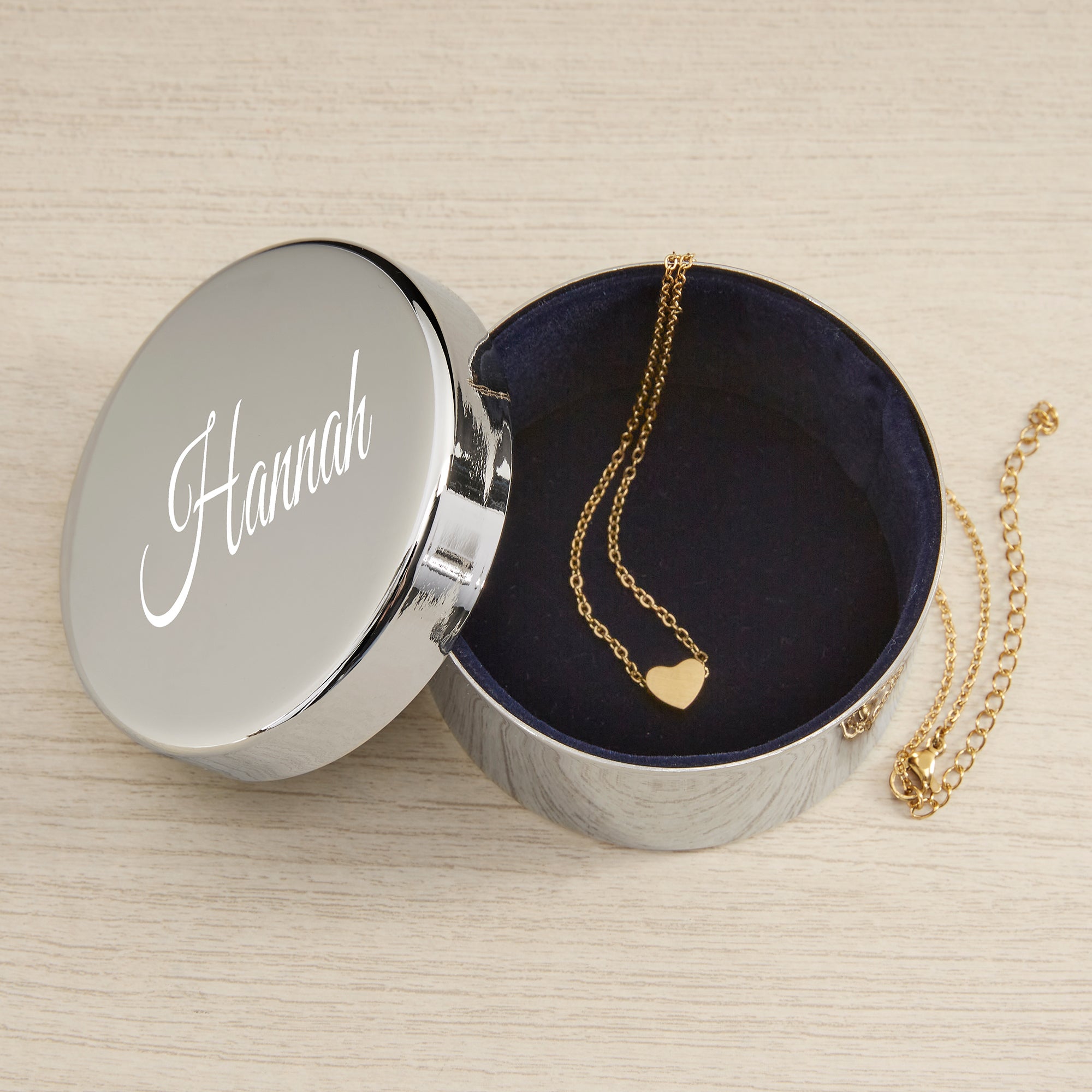 Classic Celebrations Personalized Round Jewelry Box Gift Set with Heart Necklace