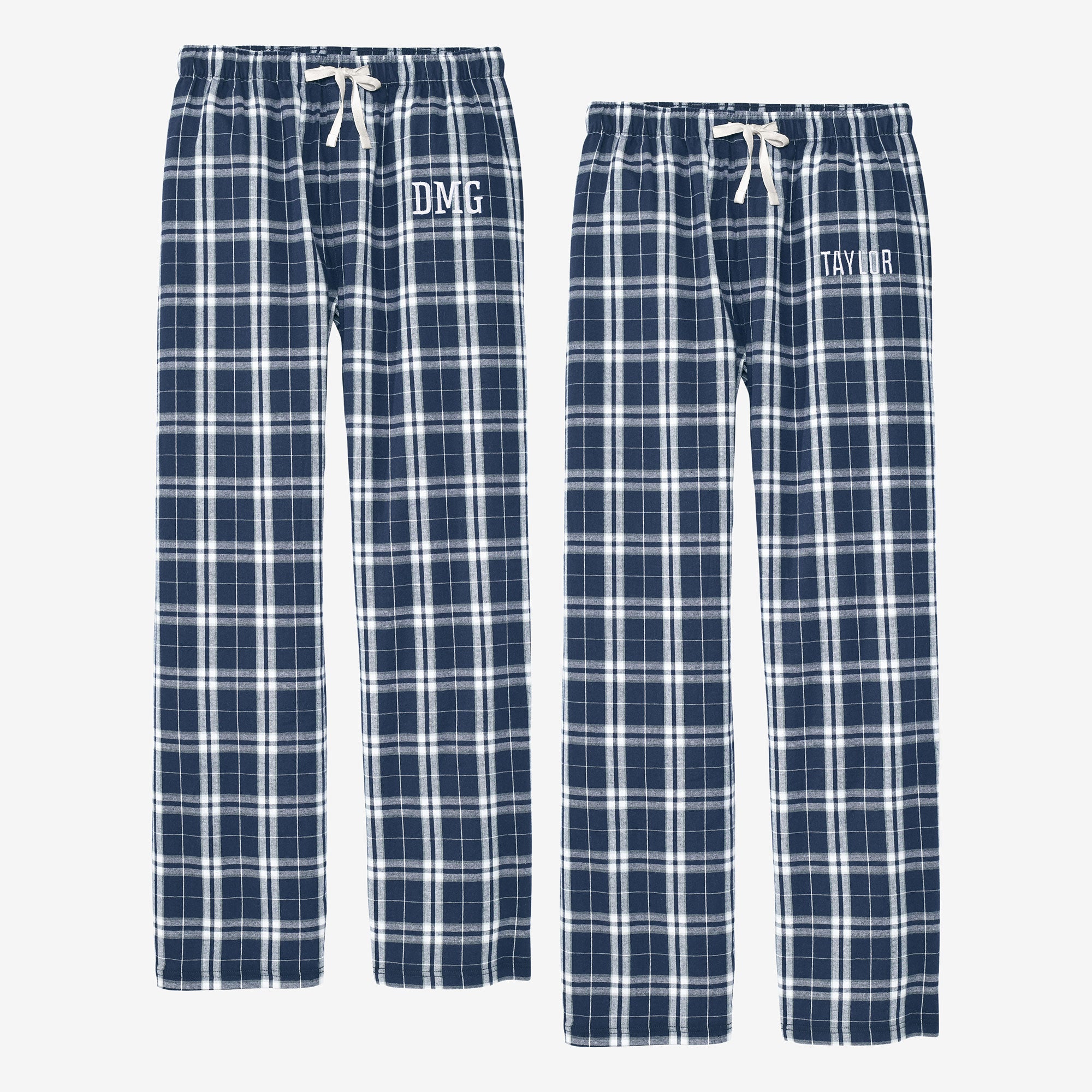 Express your individuality with these cozy and stylish Classic Comfort Embroidered Navy and White Flannel Pants, perfect for lounging or casual wear. Customize them with your own unique message to create a truly one-of-a-kind piece.