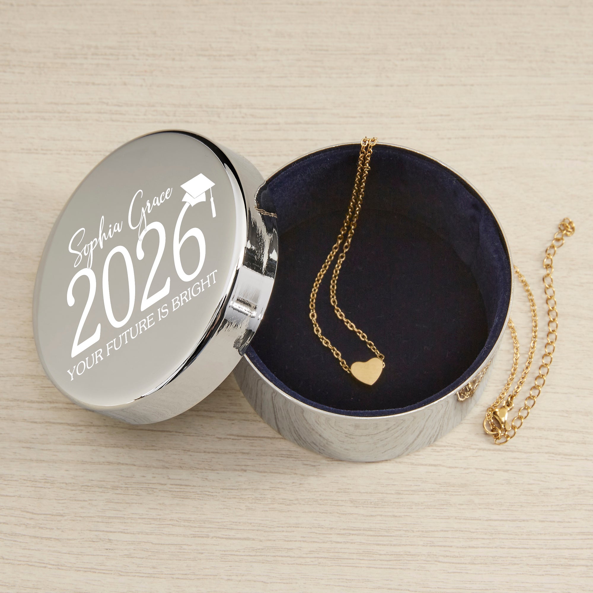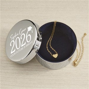 Classic Graduation Personalized Round Jewelry Box Gift Set with Heart Necklace