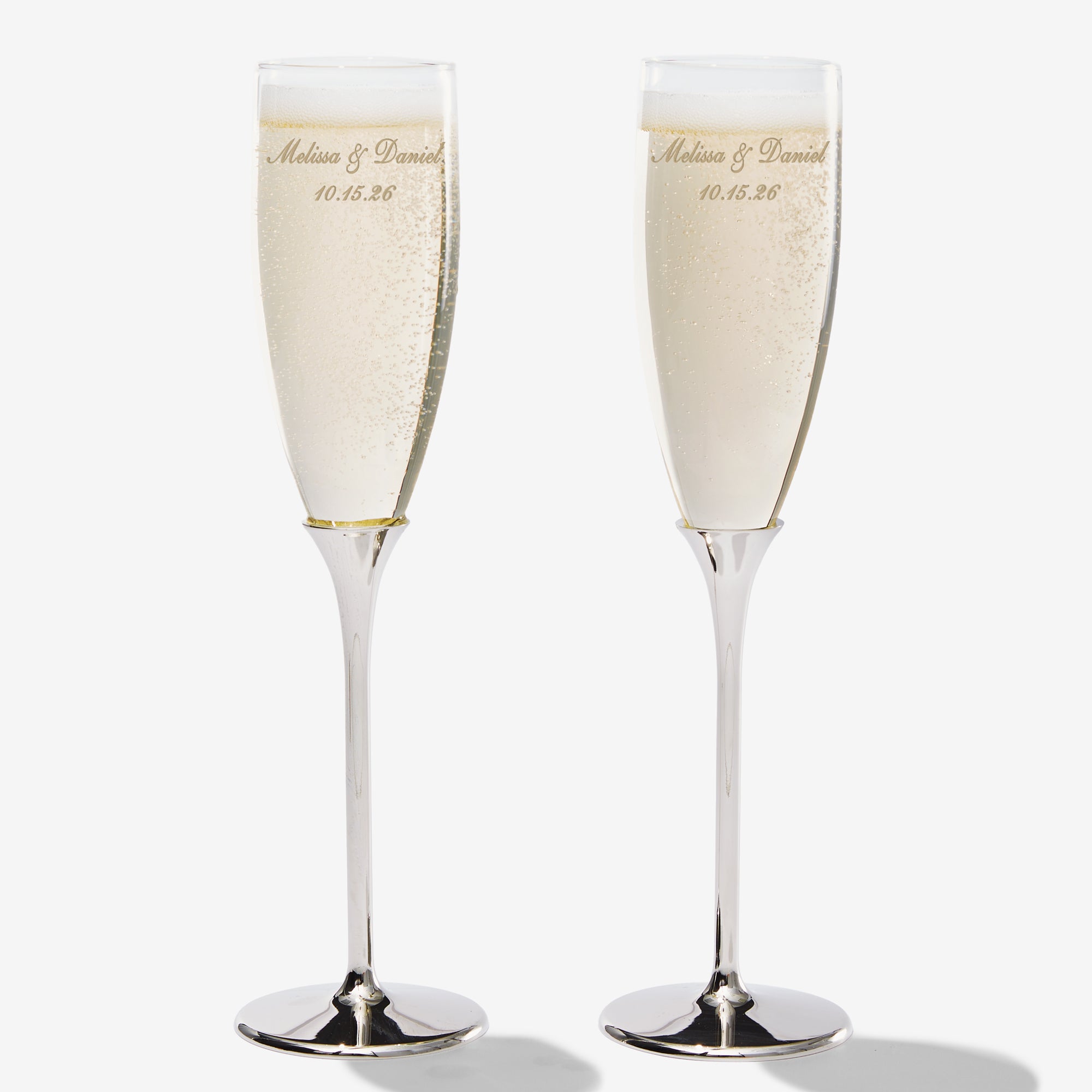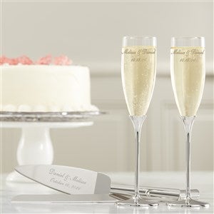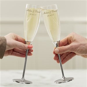 Classic Personalized Silver Wedding Flute Set