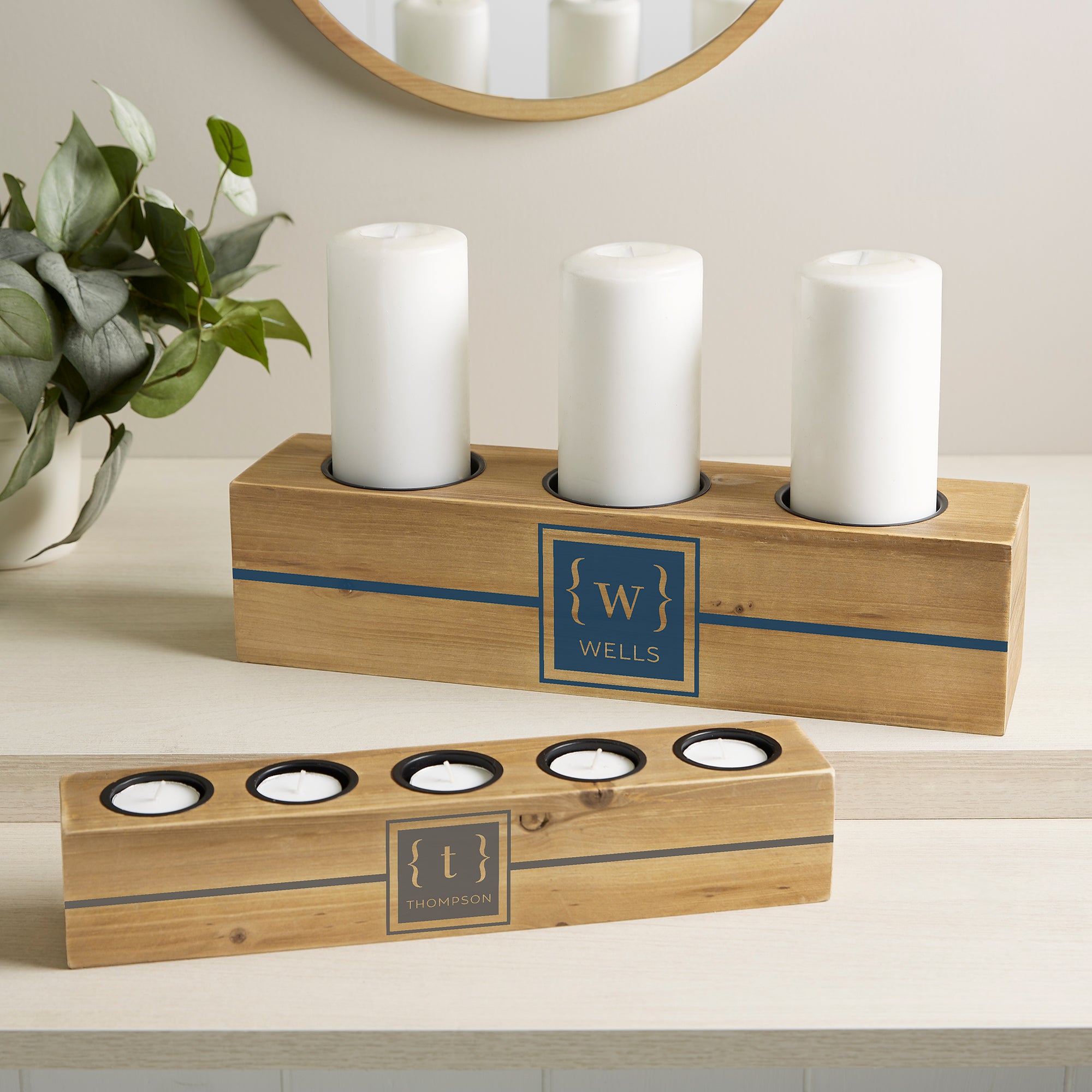 Classy Monogram Personalized Wood Candle Holder