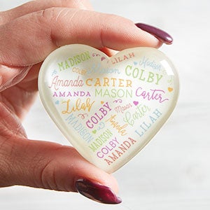 Give her a token of your affection with the Close To Her Heart Personalized Mini Heart Keepsake. Fits in the palm of your hand, this printed 3 dimensional heart will let them know they are loved by many.