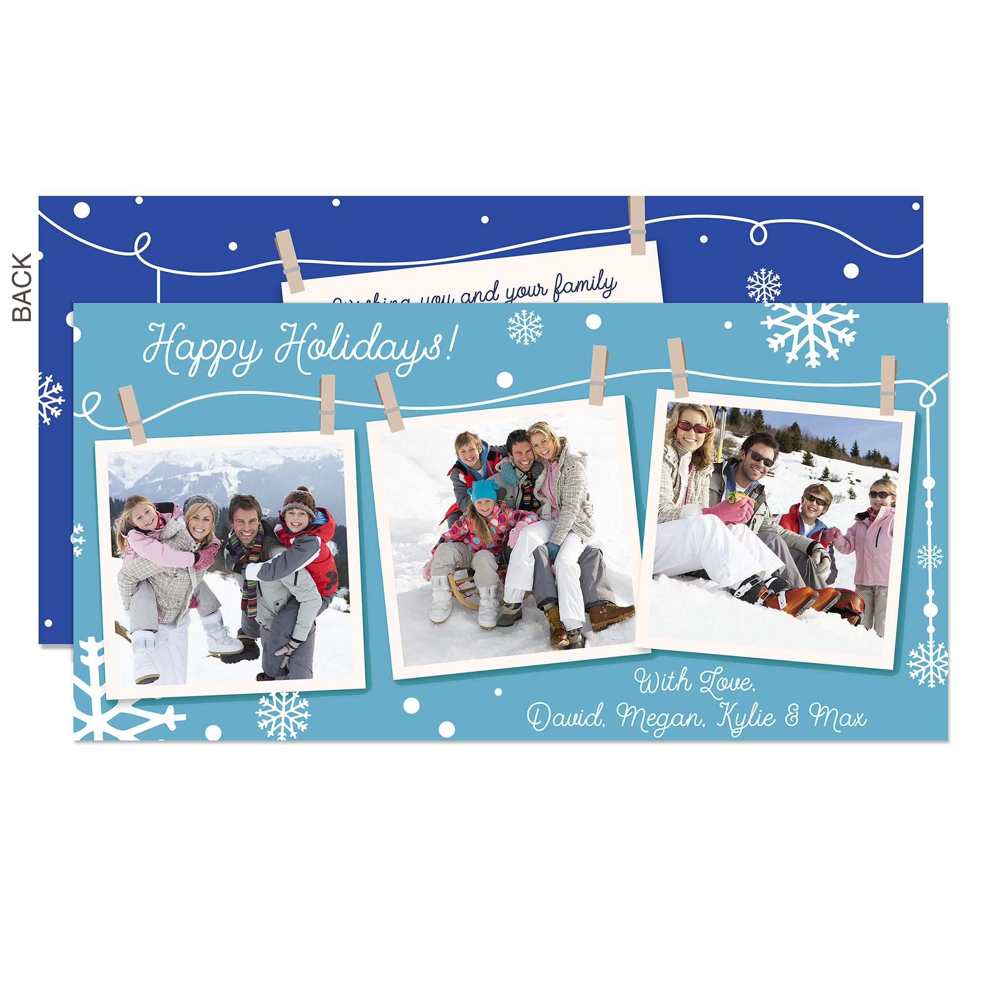 Spread holiday cheer this Season and send customized wishes to your friends and family with this fun snowflake photo design that is sure to warm the recipient's heart.