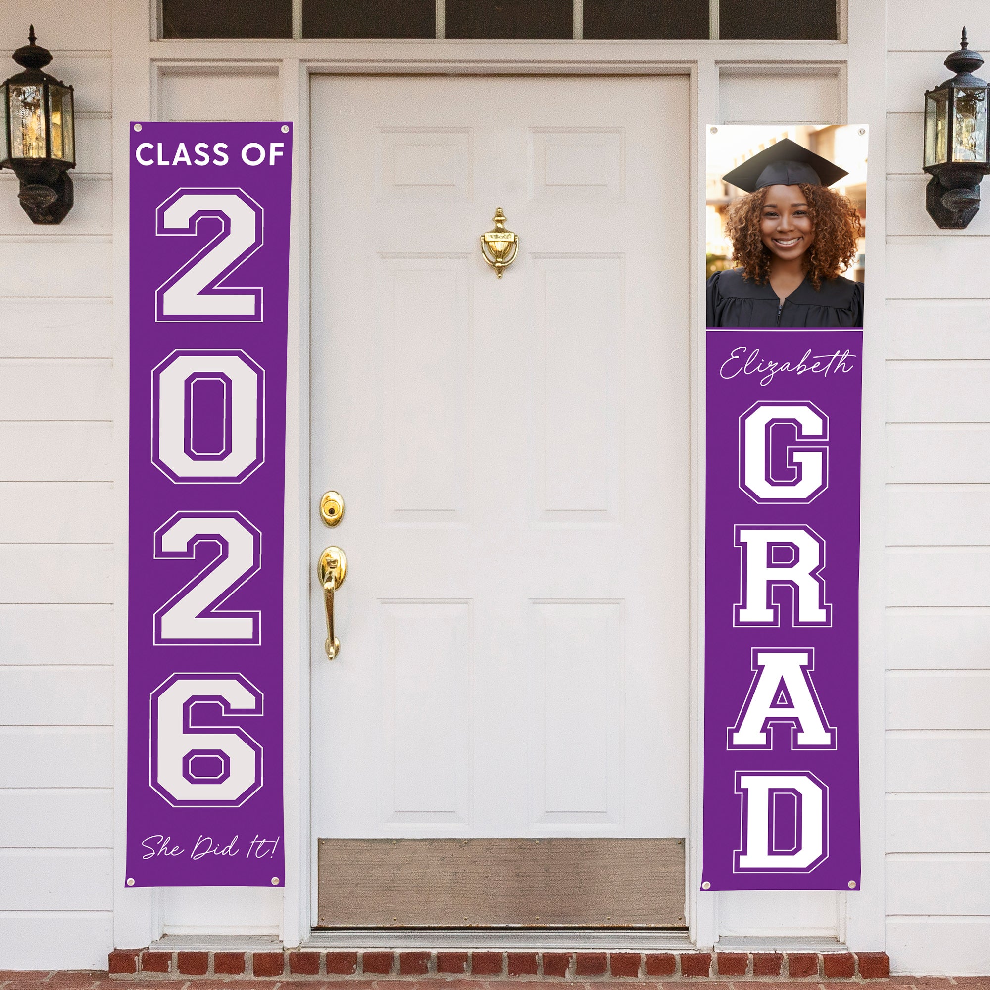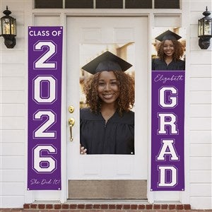 Show everyone how proud you are of your graduate with our Collegiate Year Personalized Photo Door Banner Set of 2 the perfect accessory for any grad party.