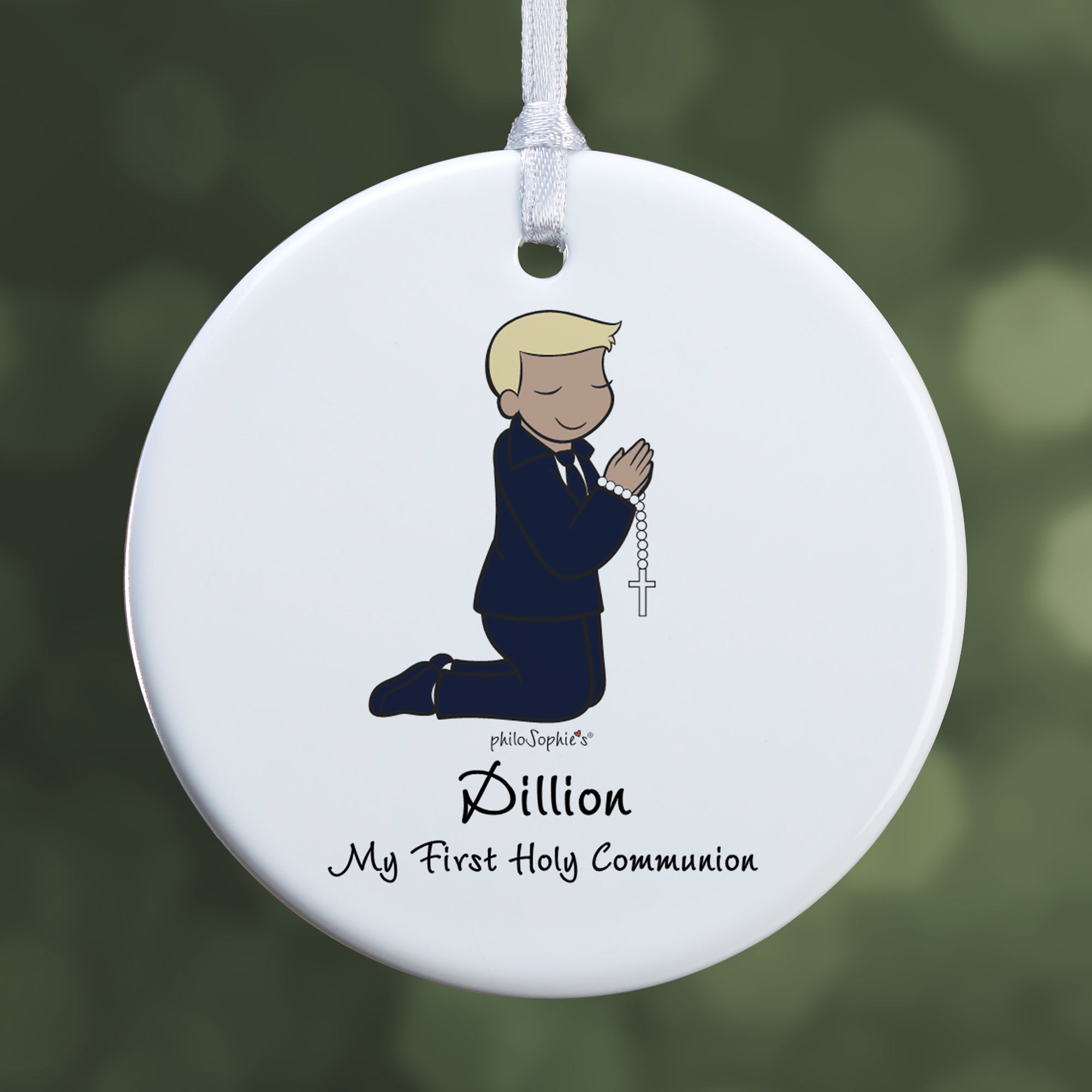 For a perfect way to decorate their holiday tree and to celebrate their special sacrament, give them the Communion Boy philoSophie's® Personalized Ornament.