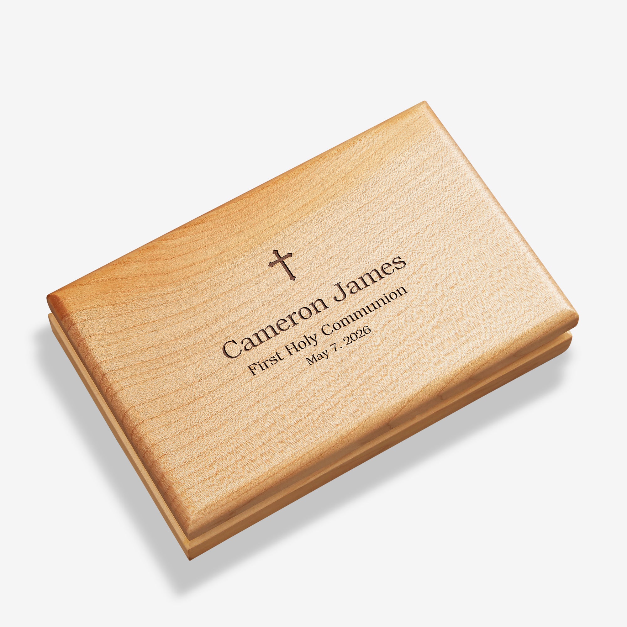 Keep any special religious keepsakes from their First Communion safe in the Communion Cross Personalized Valet Box.