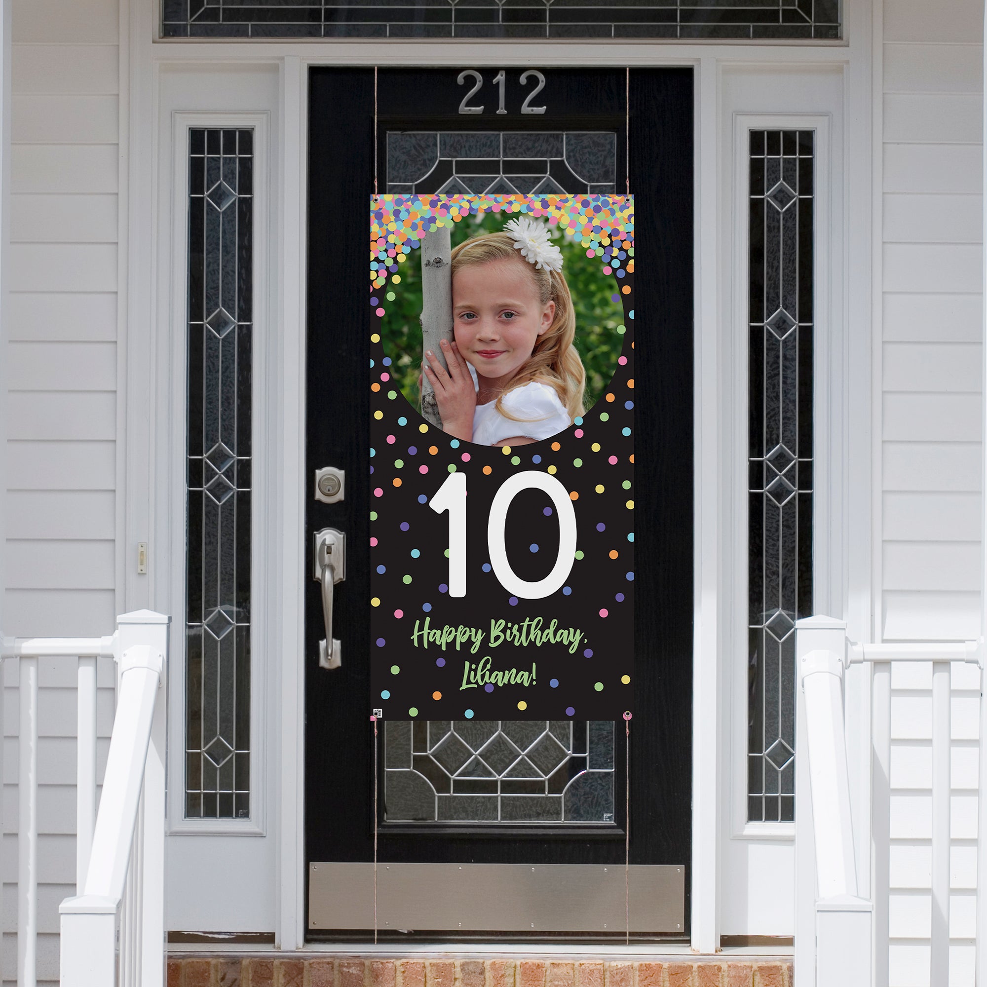 Let everyone know whose special birthday you are celebrating with the Confetti Birthday Personalized Photo Door Banner.