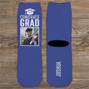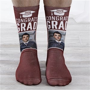 The graduate will be sure glad to put their feet up while wearing our Congrats Grad Personalized Photo Adult Socks. A unique pair of socks that they will enjoy wearing after graduation.