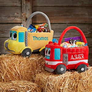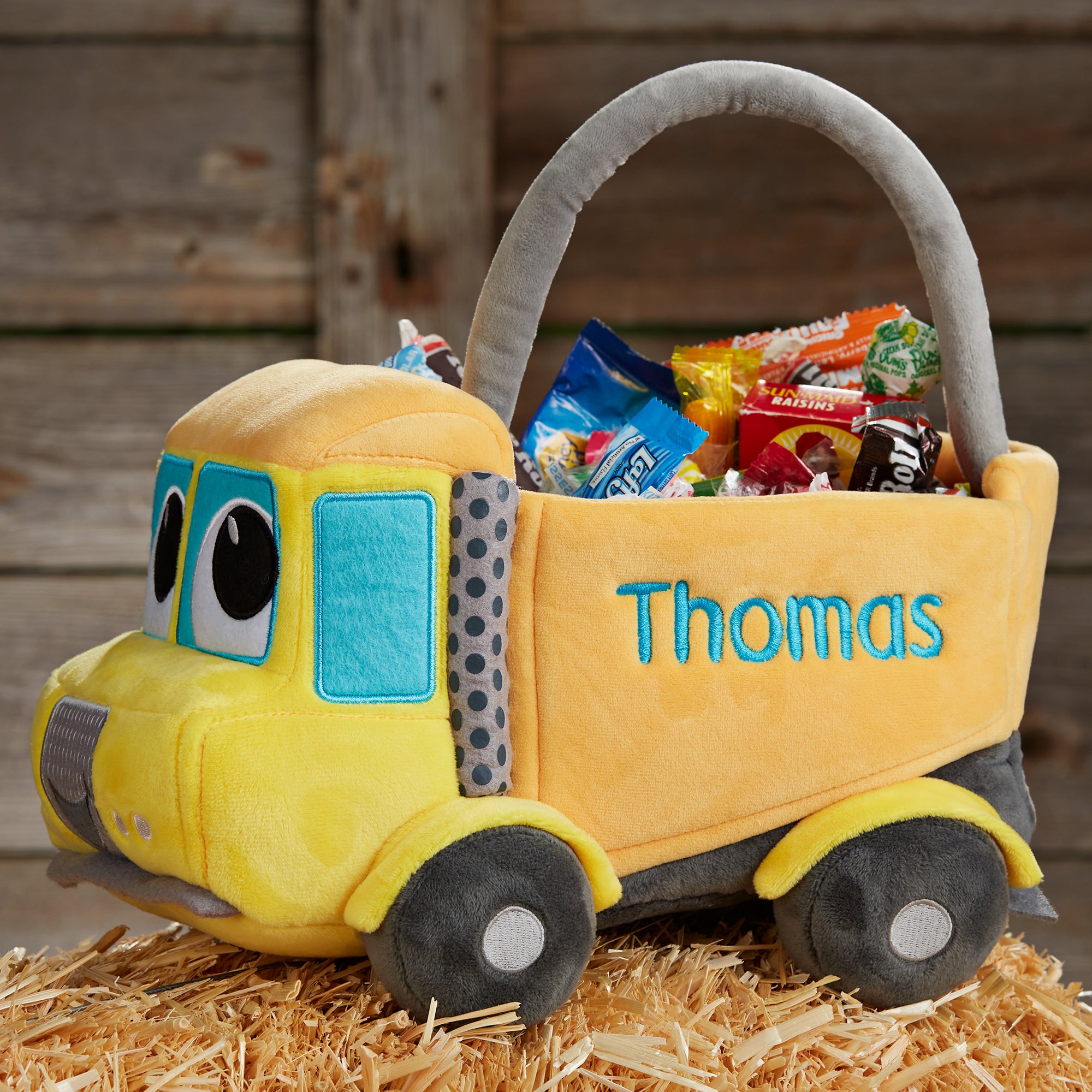 The Construction Truck Embroidered Plush Halloween Treat Bag is the perfect treat bag for any little one this Halloween, filled with all their favorite goodies. Design features realistic detail, making this Halloween basket stand out from all the rest!
