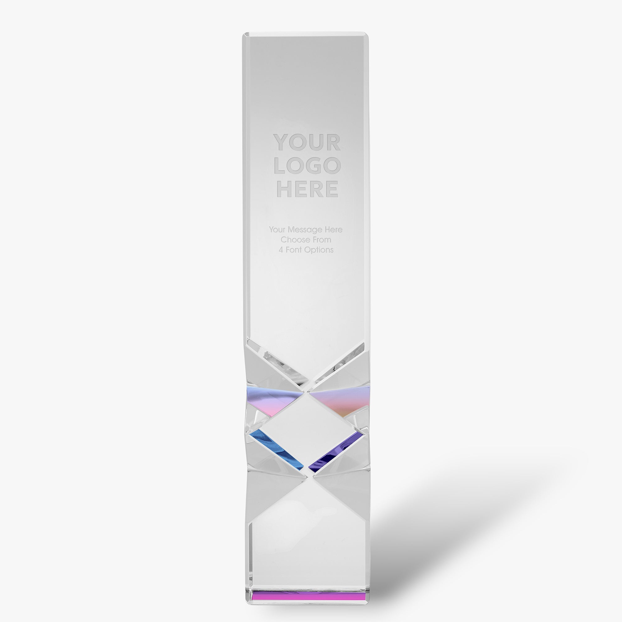 Show your gratitude for your employees hard work or years of service with the Corporate Logo Diamond Cut Crystal Pillar Recognition Award. Custom engraved with any name, logo, and/or text.
