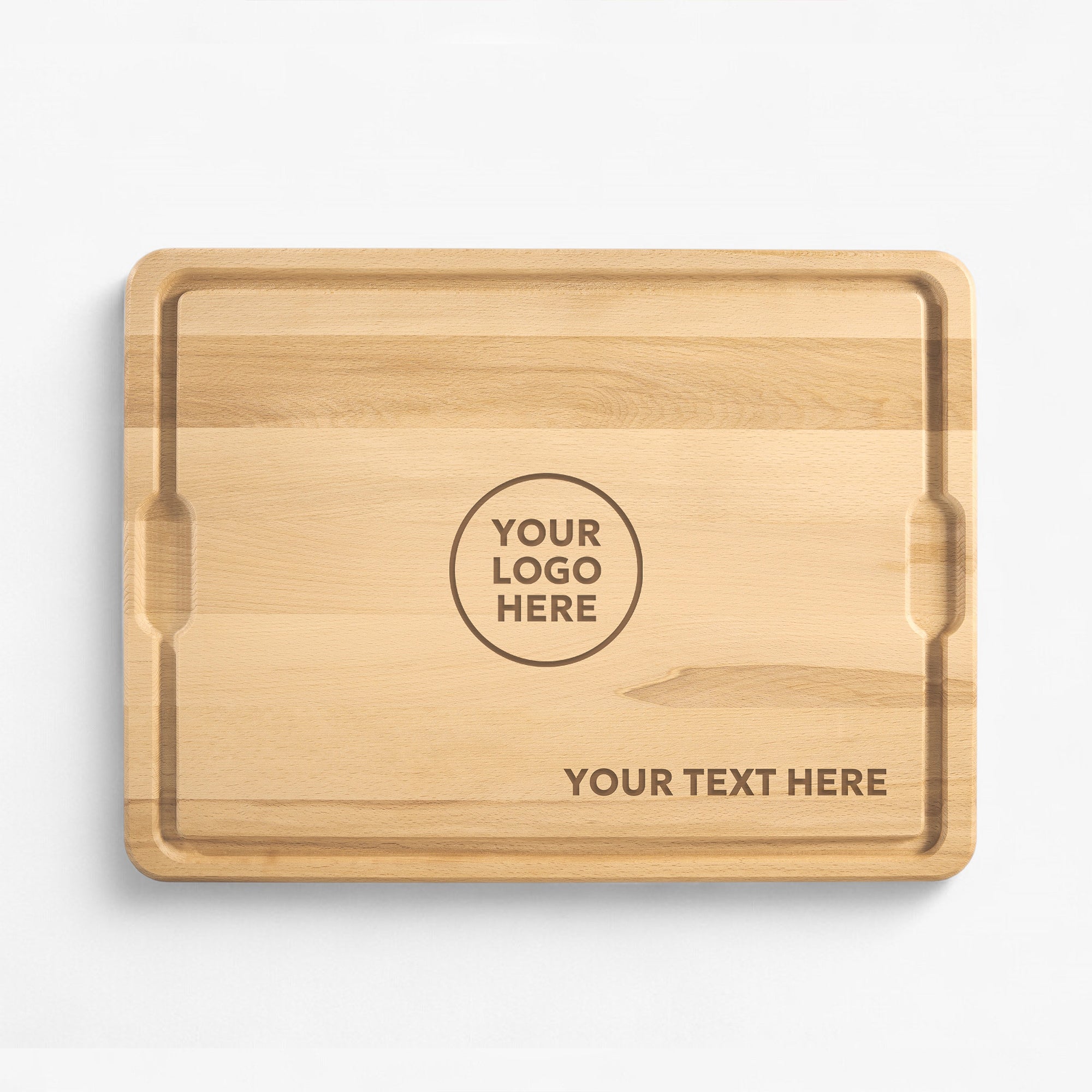 Our Personalized Logo Hardwood XXL Cutting Board is professional-quality and laser engraved with any logo and text. These custom logo boards are great for company events, restaurants, or corporate giveaways. Restaurant owners, employees, executives, and customers will love them. Our Maple cutting boards are created from reclaimed North American hardwood that have been carefully selected for quality and purchased from mills throughout the country. Because wood is a natural product, color and grain will vary on each cutting board.
