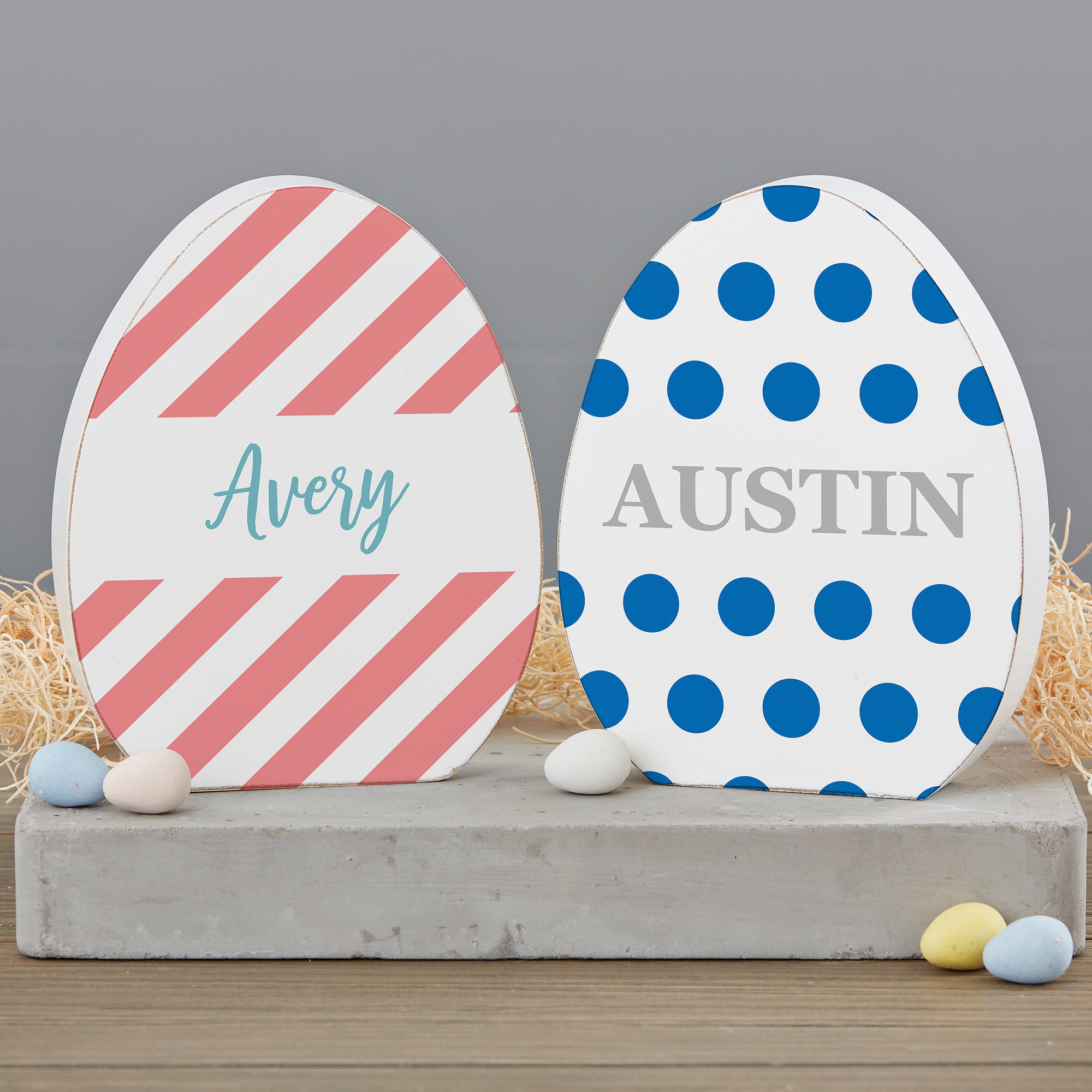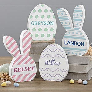 Decorate your shelf or mantel with every family member's name with the Create Your Own Personalized Wooden Easter Egg & Bunny Shelf Decorations. These adorable shelf sitters are available in 2 shapes.