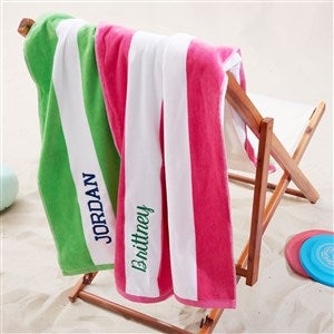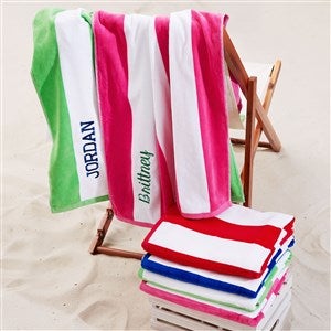 Relax by the pool or on the beach in cool style with the Embroidered Cabana Stripe Beach Towel. With a bold, striped design, this super absorbent cotton towel makes the perfect accompaniment on any summertime adventure.