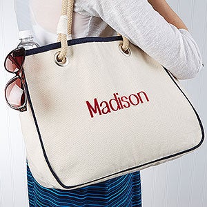 Running errands through town or taking a trip to the beach, call it yours with our Embroidered Canvas Rope Tote.