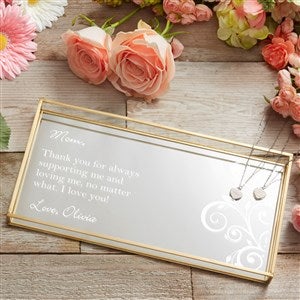 Mothers, sisters, friends and other important women hold a special place in your heart. Let them know how much they mean to you with our custom engraved Special Message Personalized Vanity Tray. Featuring a mirrored base and glass sides, this elegant piece is perfect for storing cosmetics, perfume, jewelry and more.