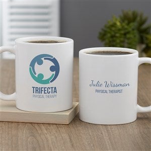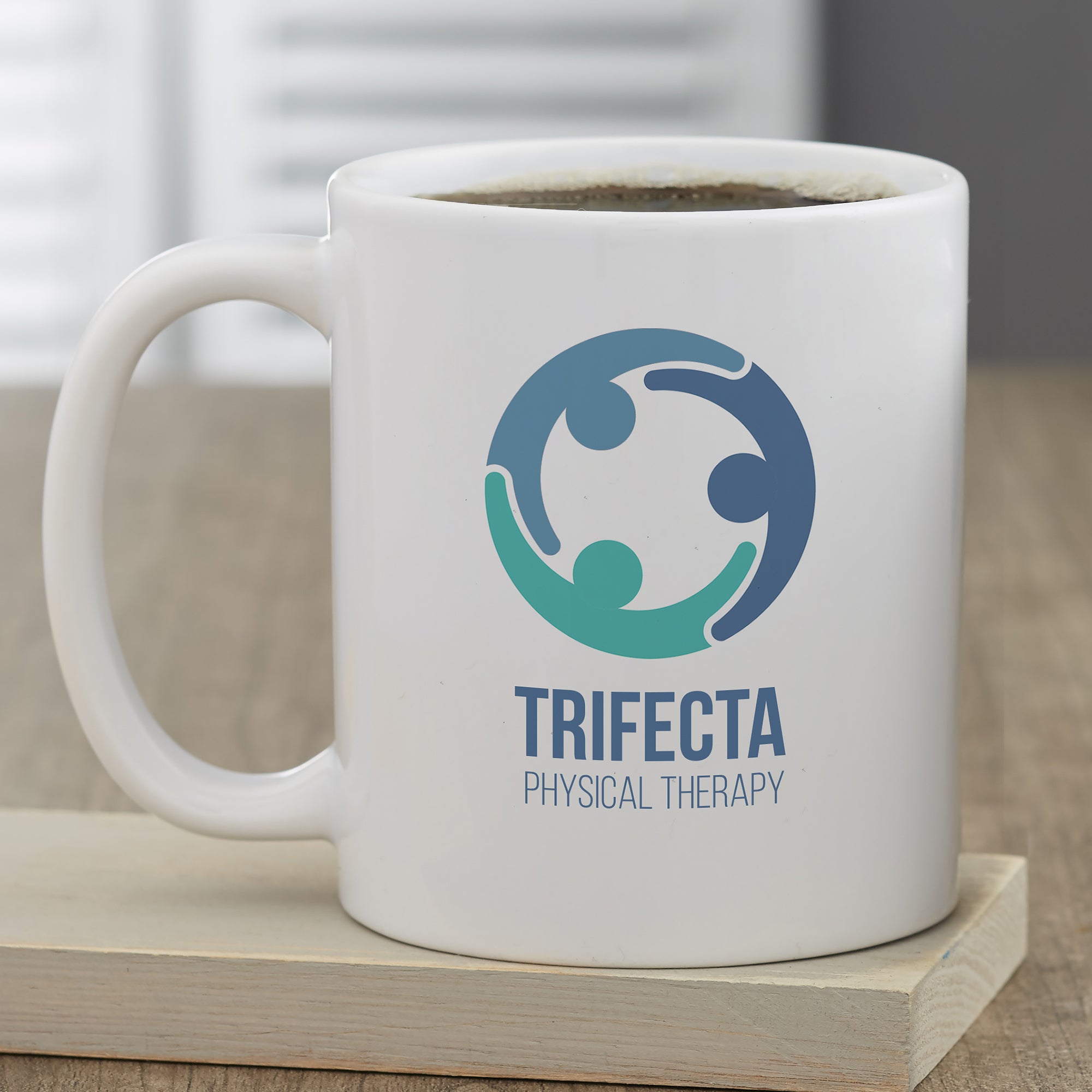 Our white, ceramic custom logo coffee cup is a simple, inexpensive promotional item for your next employee giveaway. This classy coffee mug will look great on the desktops of your executives, clients, and employees.