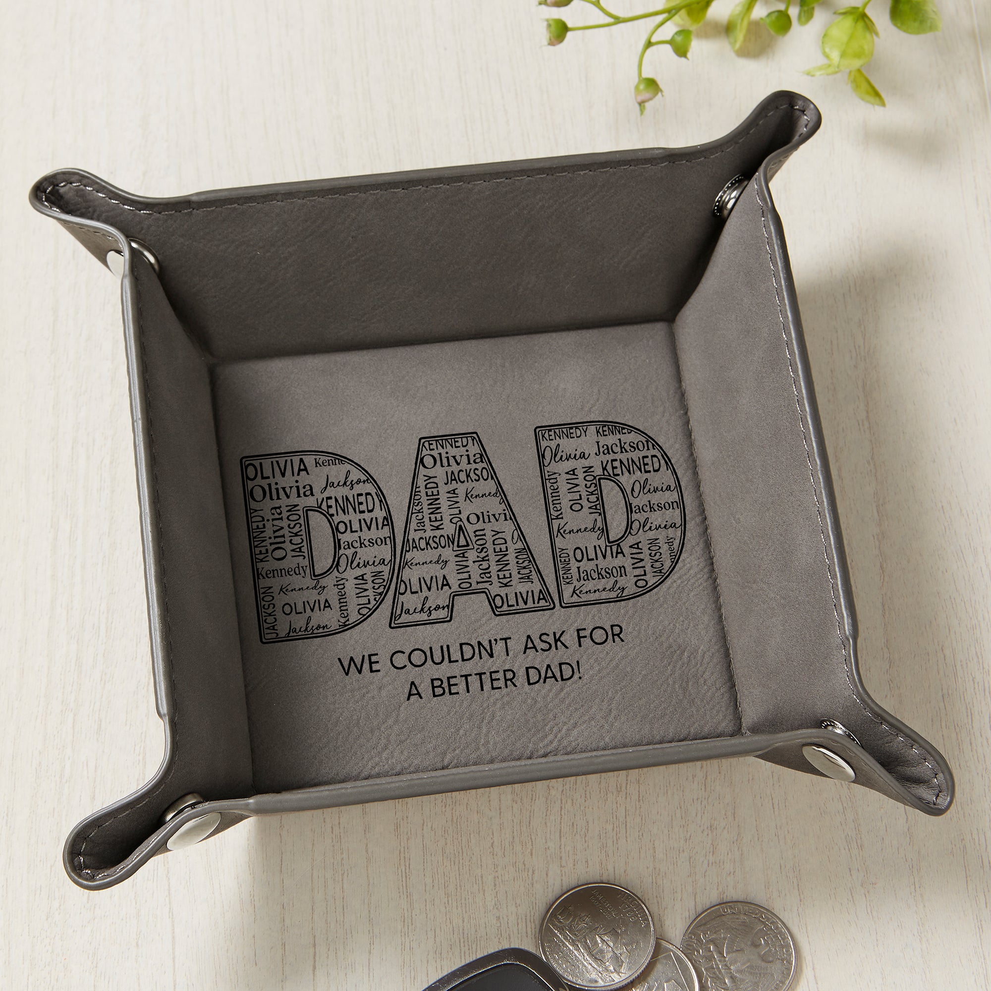Dad Repeating Name Personalized Leatherette Valet Tray