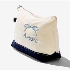 Product Information 54435-N - Darling Bow Embroidered Canvas Makeup Bag- Navy
