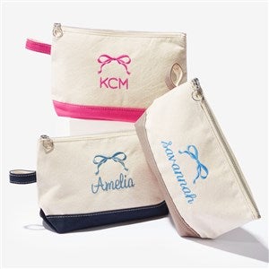 Darling Bow Embroidered Canvas Makeup Bag