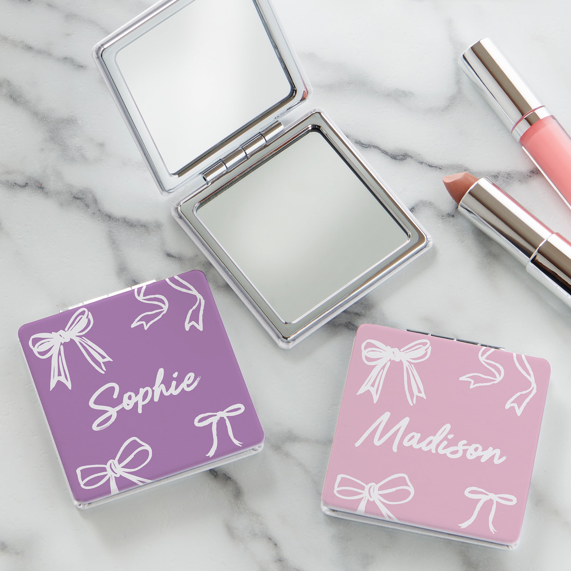 Our Darling Bow Personalized Compact Mirror will be a true reflection of her beauty. This essential accessory was designed for women on the go.