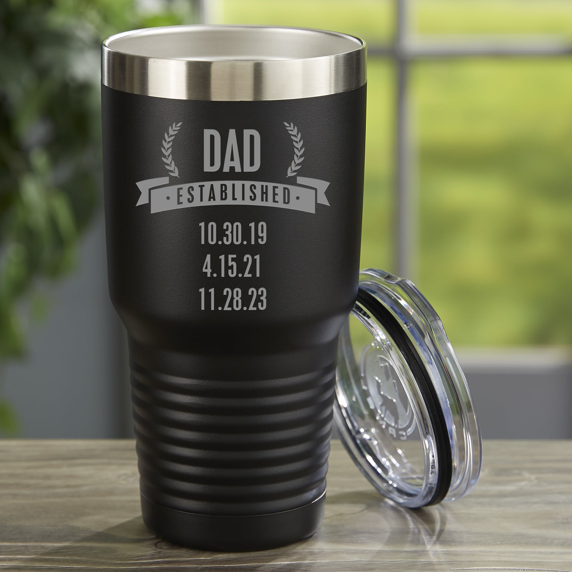 Give him a morning reminder of all of his children or grandchildren with the Date Established Personalized 30 oz. Vacuum Insulated Stainless Steel Tumbler.
