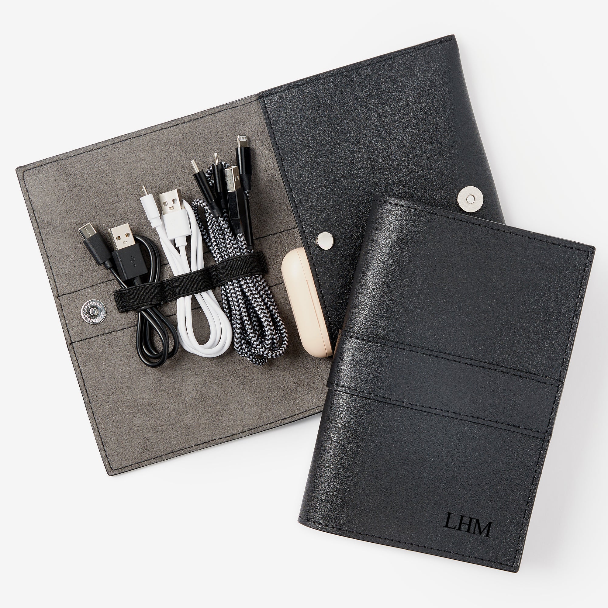Debossed Initials Leather Tech Organizer