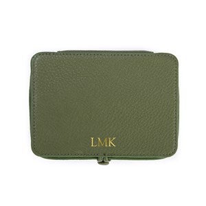 - Interior features slip pocket, three necklace snaps, earring tab with eight holes, three ring cushions and two open compartments
