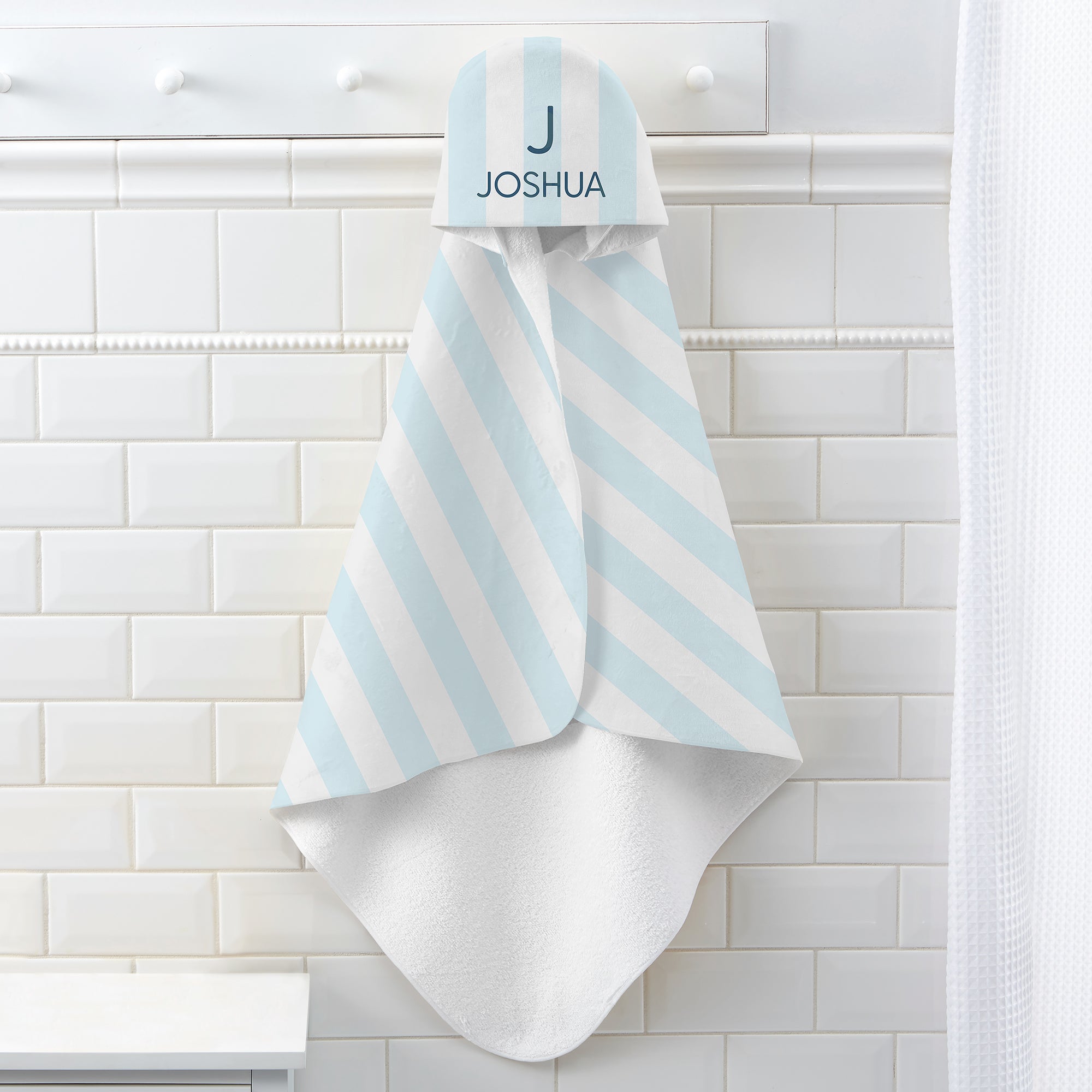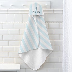 Product Information 32266 - Delicate Stripes Personalized Baby Boy Hooded Towel