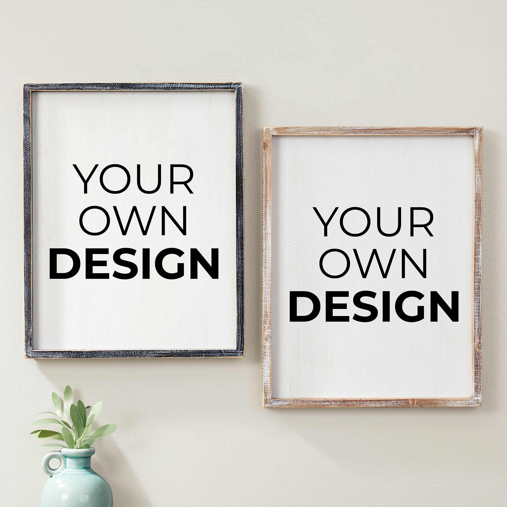 Celebrate your event or occasion with our custom printed Design Your Own Personalized 14" x 18" Barnwood Frame Wall Art.