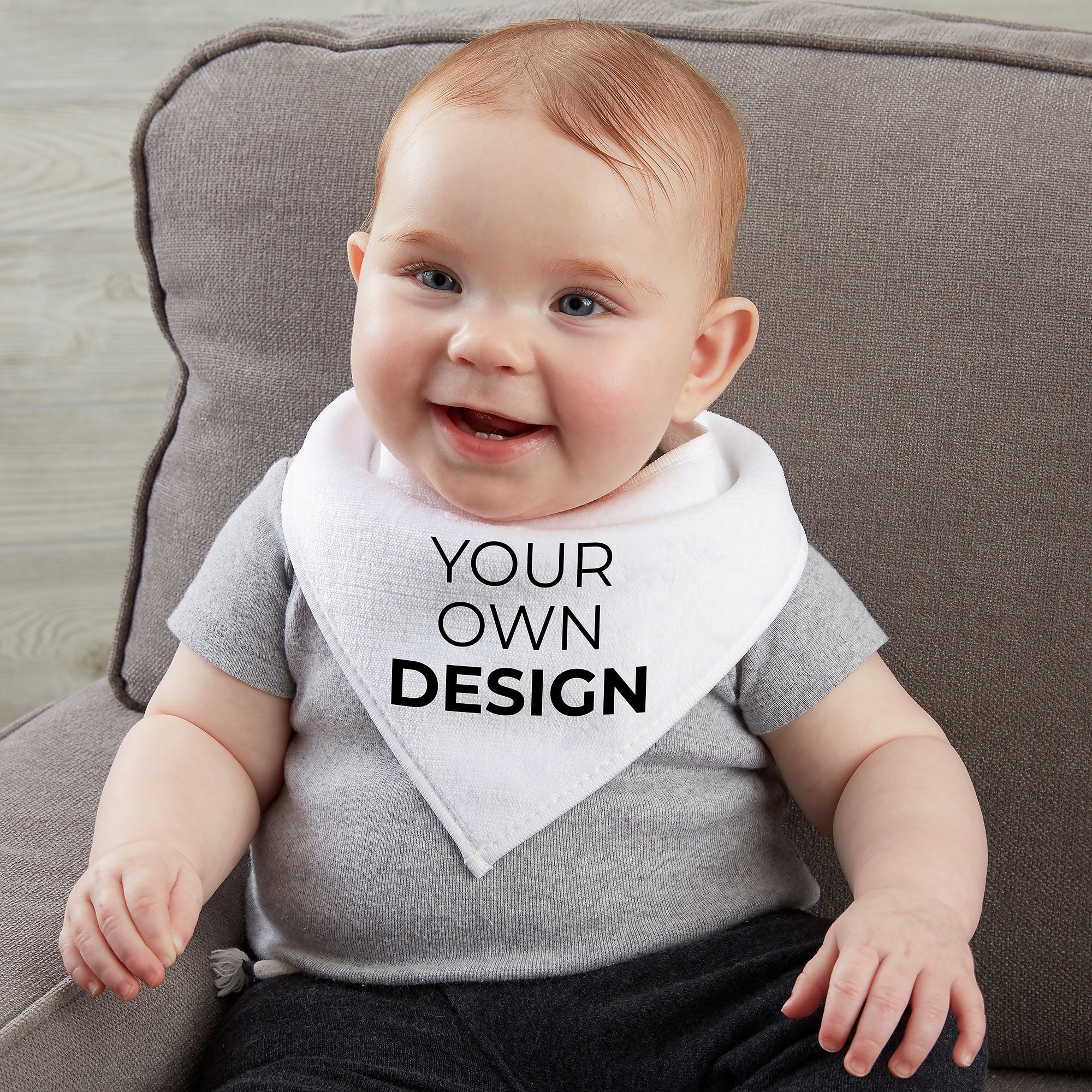 Dress your baby up in personalized style with our Design Your Own Personalized Bandana Bib. This bib is the perfect canvas for a unique design, a must have for any occasion or event!