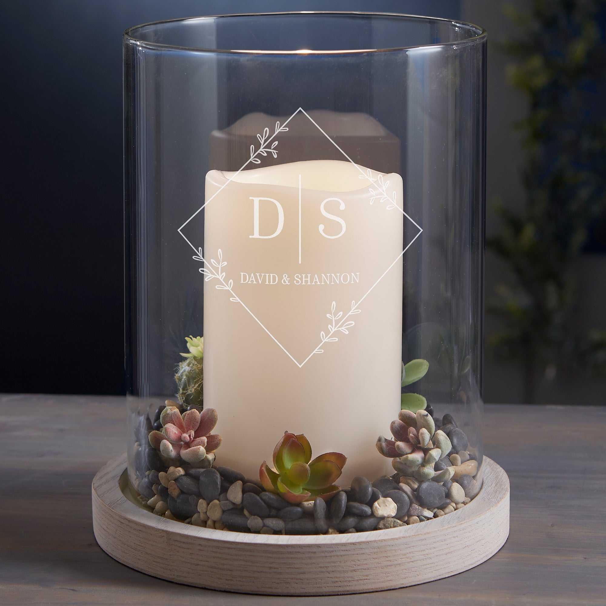 Diamond Initials Personalized Hurricane with Whitewashed Wood Base