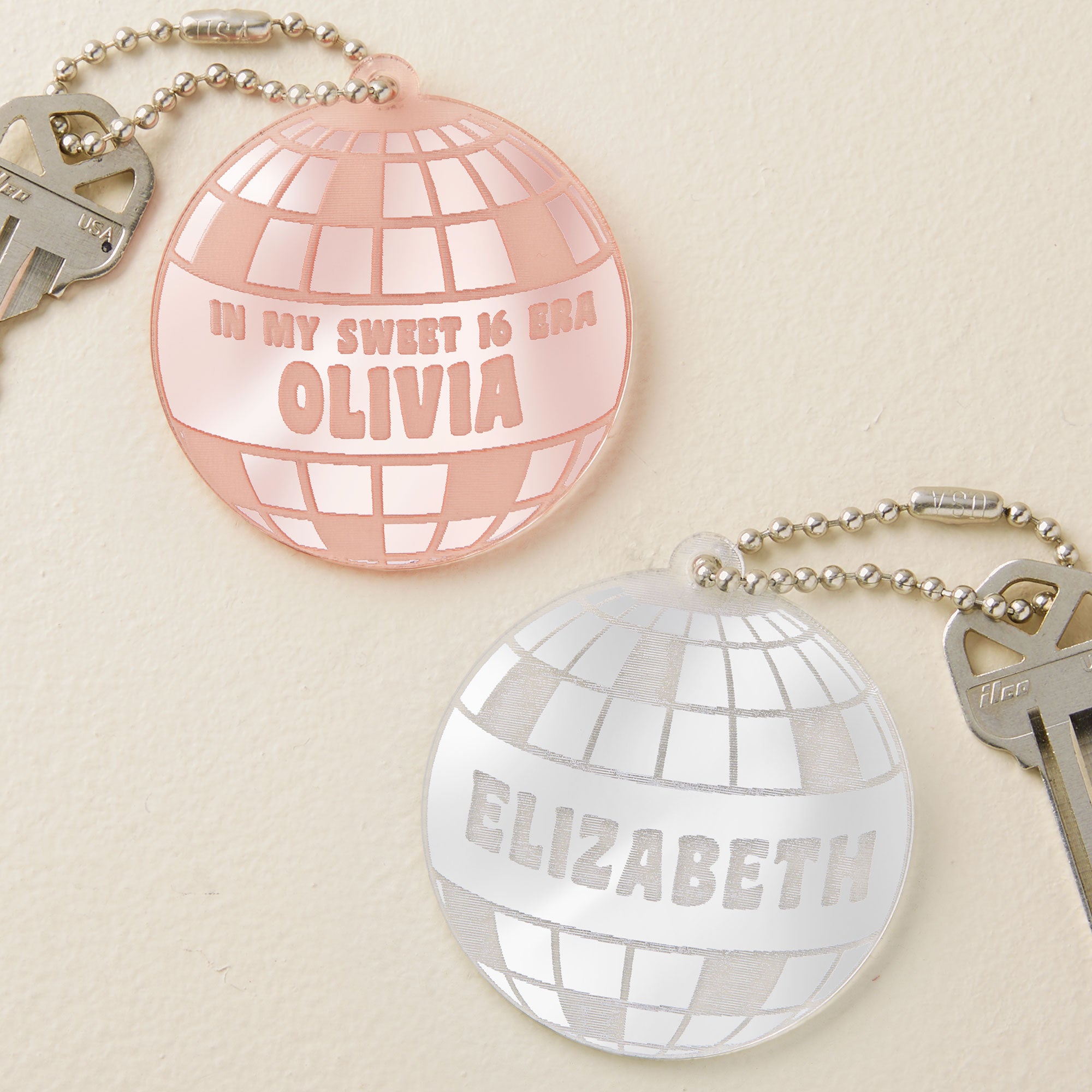 Both fun and functional, our Disco Ball Personalized Acrylic Keychain carries keys and fun design everywhere you go!