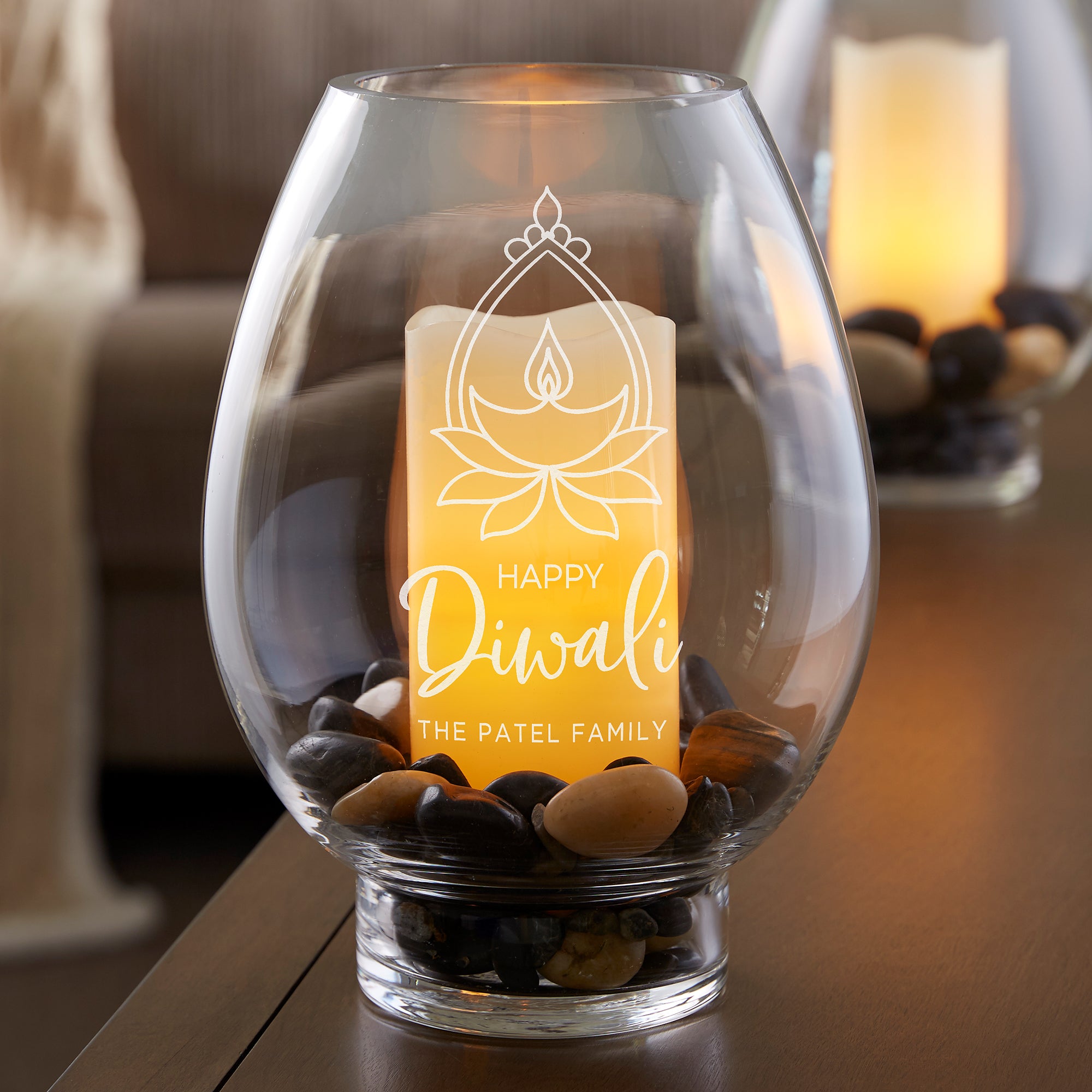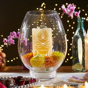 Add a beautiful light centerpiece to your home with our Diwali Engraved Hurricane Candle Holder.
