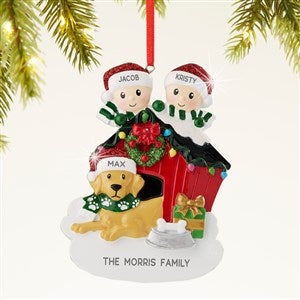 Our adorable Doghouse Family Personalized Ornament will make a great addition to their tree this holiday! Showcase all the family members including the dog.
