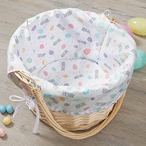 The Easter Egg Personalized Easter Basket is the perfect basket to fill with all of their goodies from the Easter Bunny. The liner features a repeating Easter egg pattern making it the perfect choice for any kid!