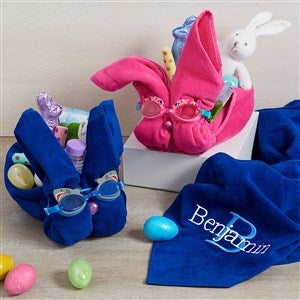 Make your own beach towel baskets with this easy step-by-step Beach Towel Bunny Basket Tutorial.