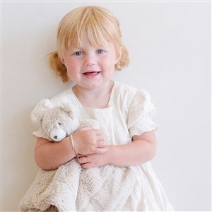 Your little one will love our Embroidered Bear Stuffed Animal Lovey. Blanket meets stuffed animal with this buttery soft lovey. Embroider a name, monogram, or initial with your choice of thread color and font. Makes the perfect gift for baby showers, birthdays, and more!