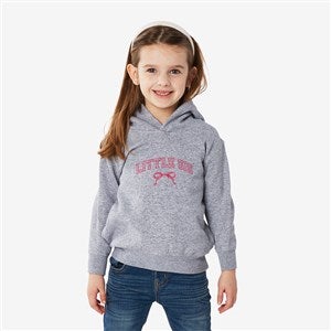 Celebrate their favorite title with the Embroidered Bow Hooded Kids Sweatshirt by Jessie James Decker. Crafted from soft, cozy fleece, it’s perfect for playdates, family outings, and staying warm on everyday adventures. The collegiate-inspired lettering paired with a sweet bow detail gives this classic hoodie a fun, trendy touch kids will love.