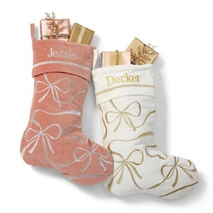 This Bows & Ribbon Stocking is specially designed to make your holiday season even more fun and chic! The velvetten and embroidered bow details are sure to up level your holiday décor.