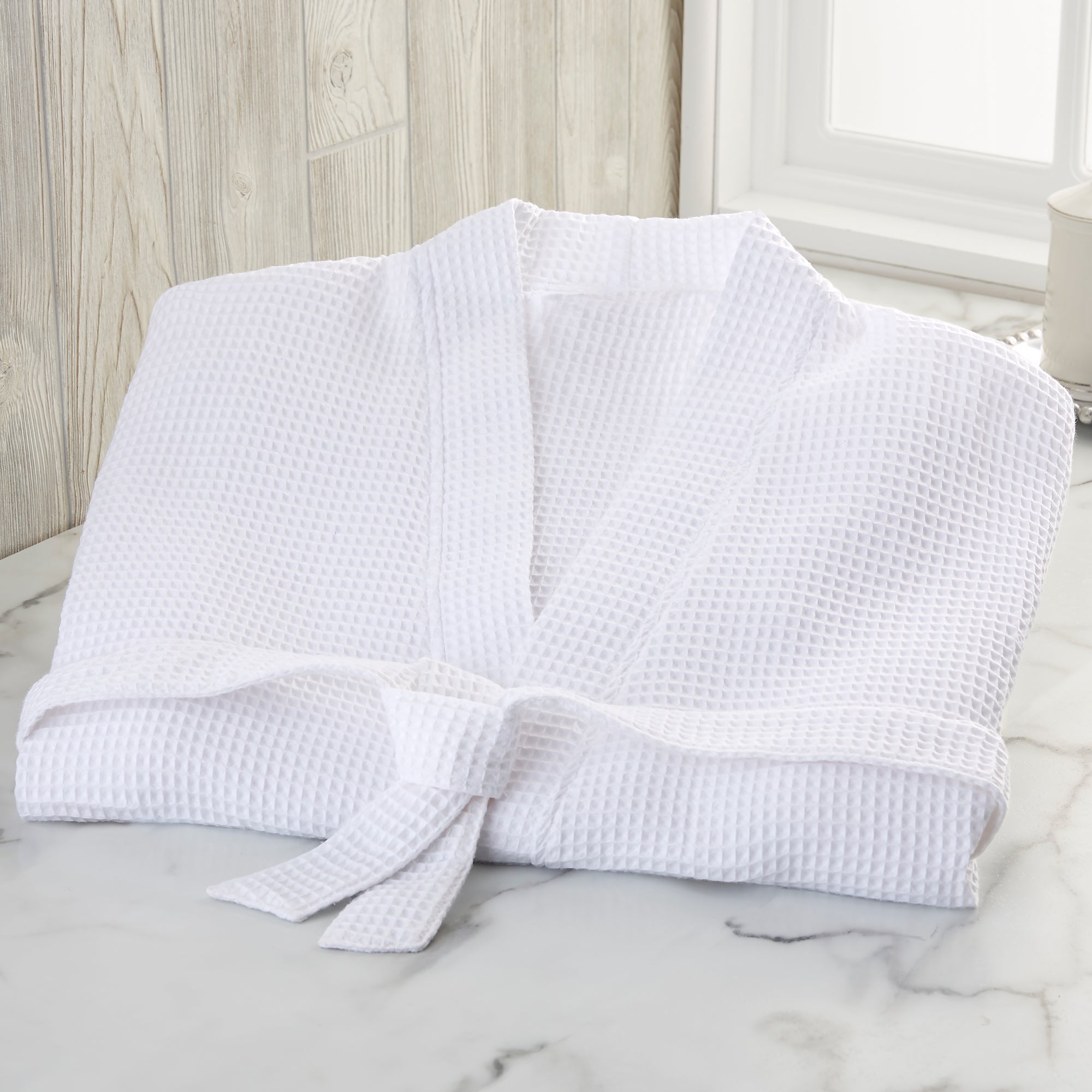 - Robe features two side pockets and a self-tie closure with double belt loops. Knee length robe measuring 36" in length and has a 56" sweep