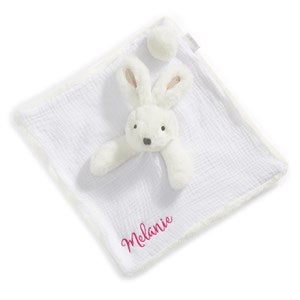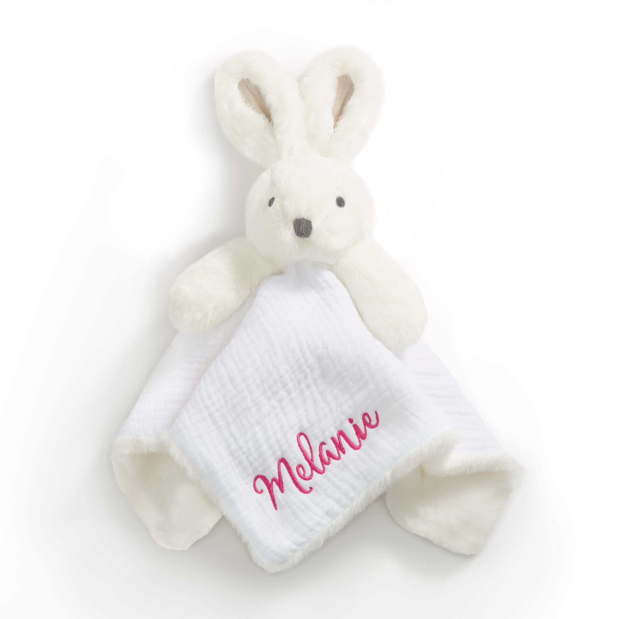 This Embroidered Bunny cuddle bud is a cute and cozy gift for any newborn. Crafted of quality plush, and durable fabric to last years from infant to toddler and more. Perfect for all those snuggly moments.