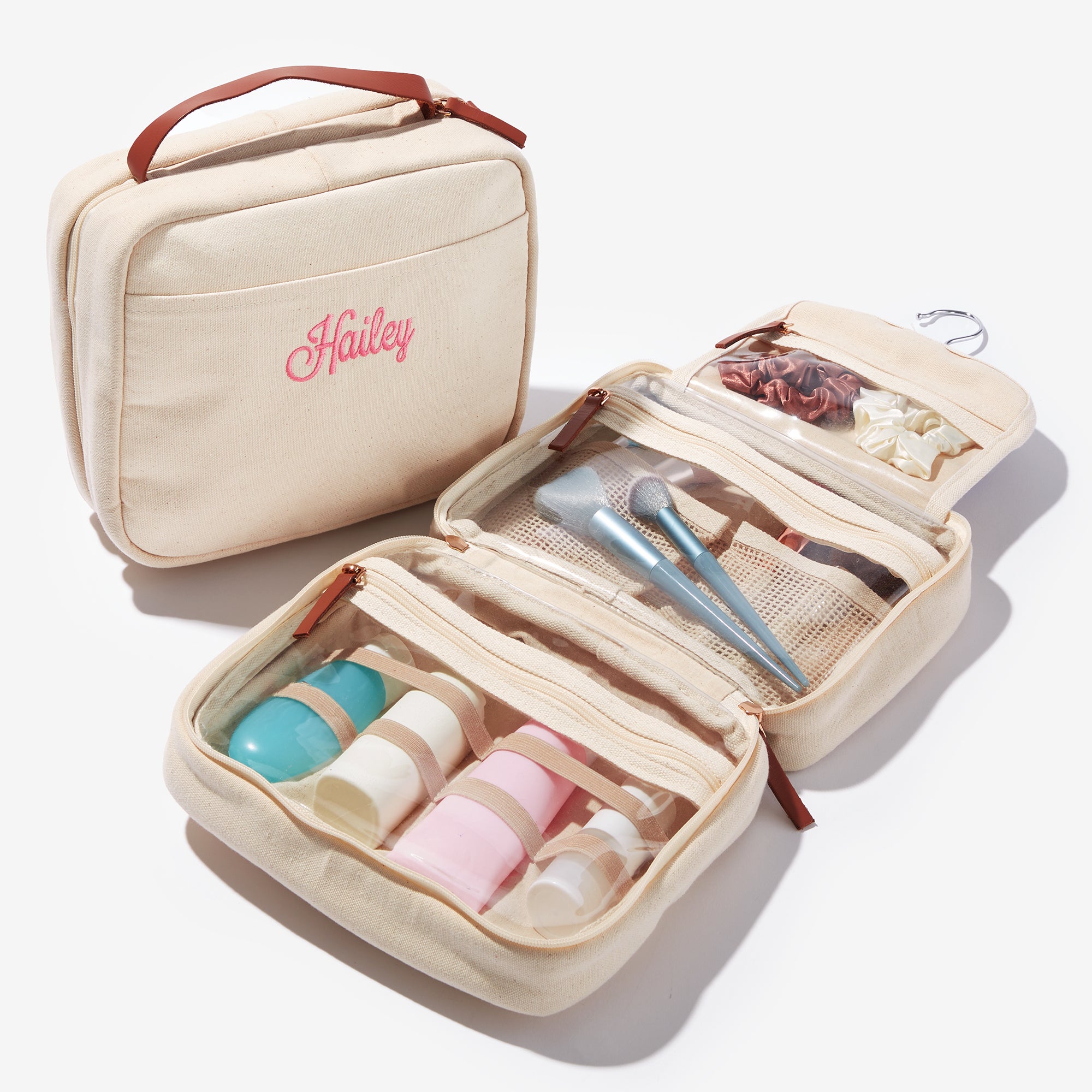 Travel smart and stay organized with the Embroidered Canvas Hanging Travel Bag — a sleek, functional, and personalized solution for keeping your essentials in order wherever you go. With custom embroidery and a thoughtfully designed layout, this bag is perfect for jet-setters, weekend warriors, and everyday adventurers.