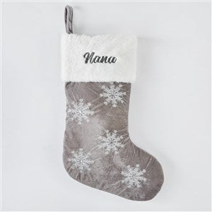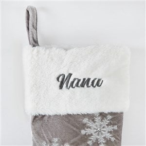Embroidered Gray & Silver Snowflake Stocking with Fur Cuff