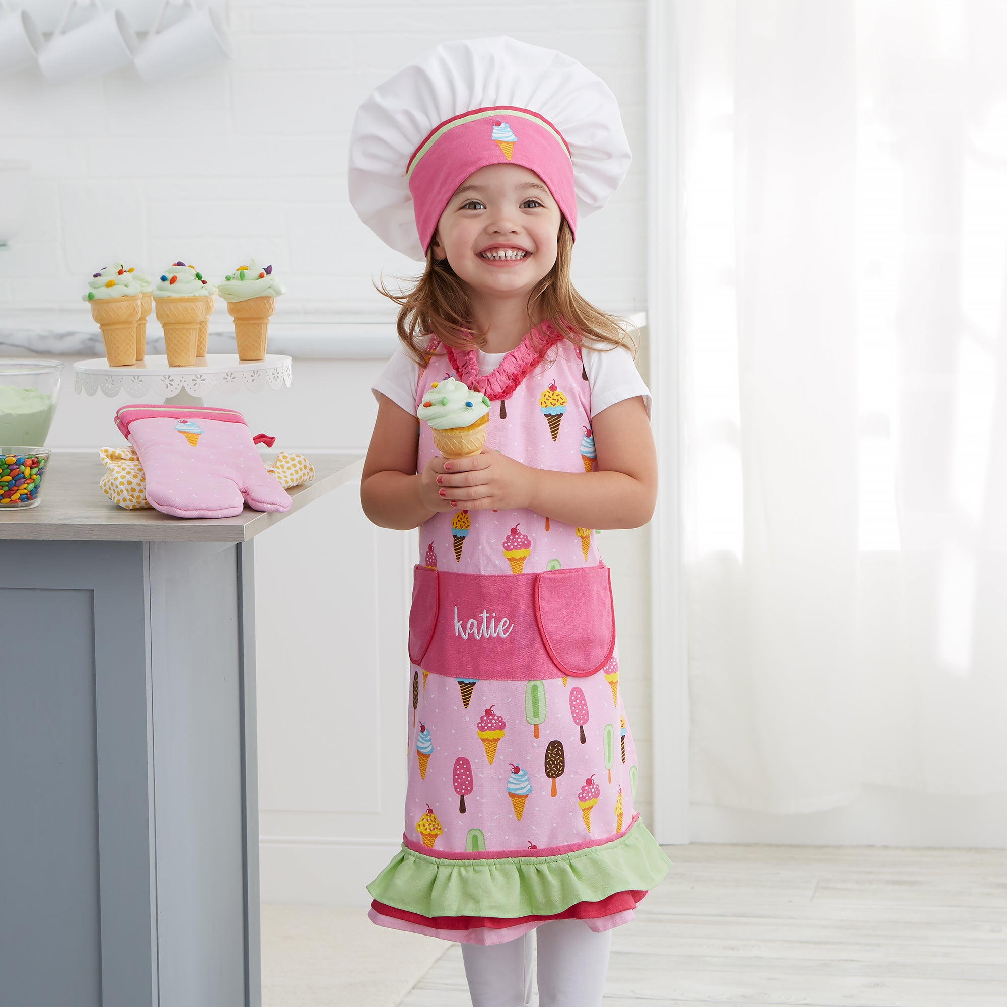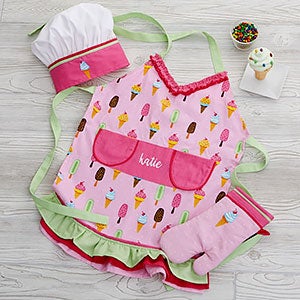 Baking is a favorite activity kids love, make it extra special by giving them our Ice Cream Embroidered Apron Set!