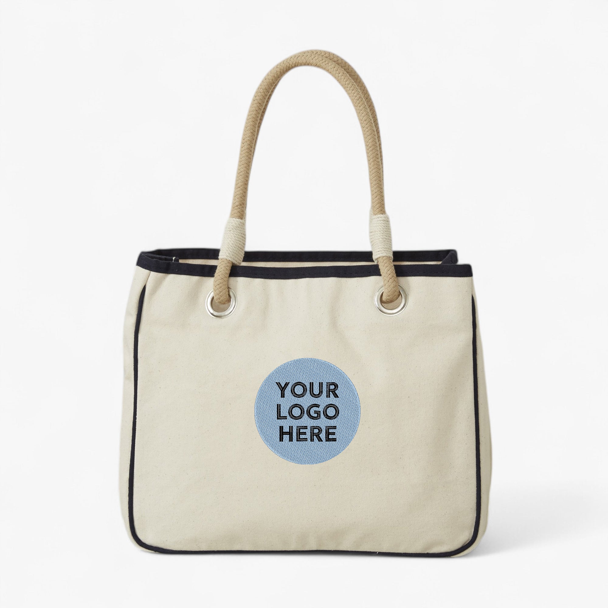 Running errands through town or taking a trip to the beach, call it yours with our Embroidered Logo Canvas Rope Tote.